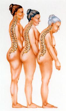 Meestal door een val op de billen breken een of meer wervels op de overgang van de borst- naar de lendenwervelkolom. Dit geeft pijn vaak laag in de rug (terwijl de breuk dus hoger zit!). Na verloop van tijd valt op dat de patiënt krommer en kleiner wordt. Een wervelbreuk kan echter ook spontaan of door lichte inspanning ontstaan. Bijvoorbeeld bij een hevige niesbui, het opstaan uit een lage stoel of bij het pakken van een boek uit de kast.![]() Van links naar rechts: normale rugwervels – rugwervels met lichte osteoporose – rugwervels met ernstige osteoporose | ![]() |